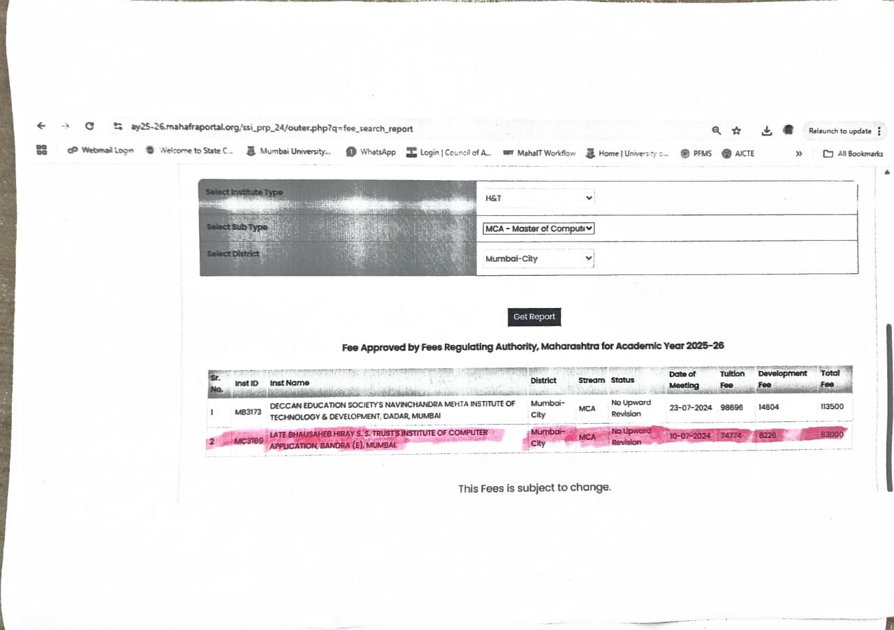 APPROVED FORMAT FOR COMPUTATION OF FEES FOR THE ACADEMIC YEAR 2026-27 FOR MCA STREAM